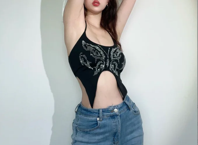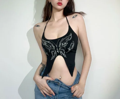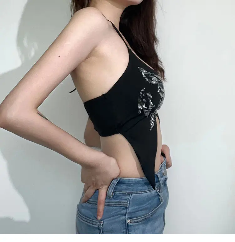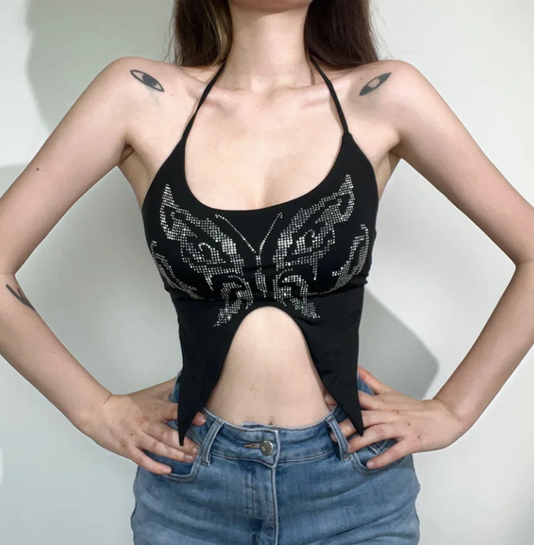 Y2K Tops Sexy Women Clothing Butterfly Asymmetric Camisole Top Summer Night Club High Street Women’s Sleeveless Crop Tank Tops